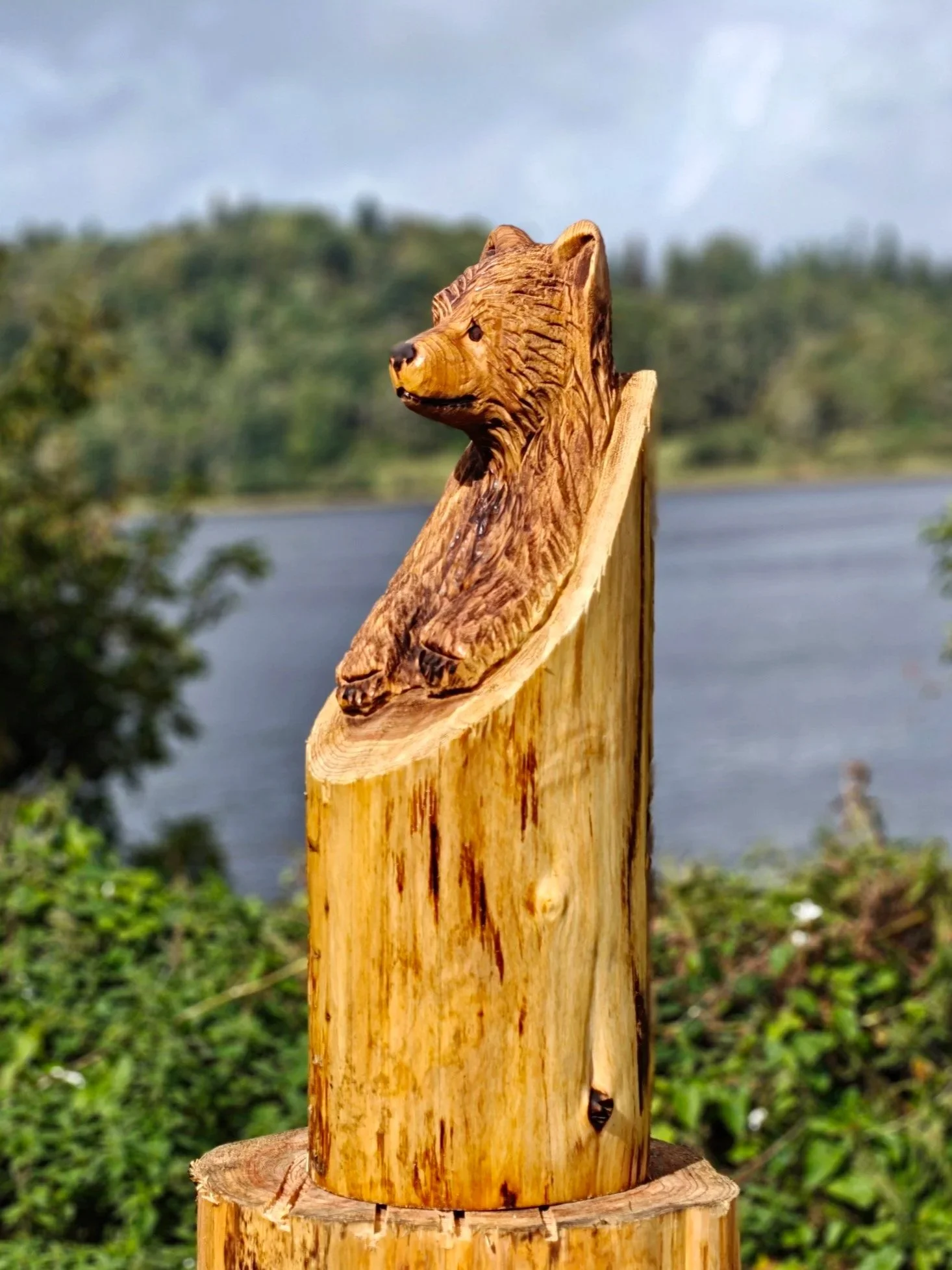 Kaspian Askham I Bespoke Chainsaw Carving I Bear bench sculpture